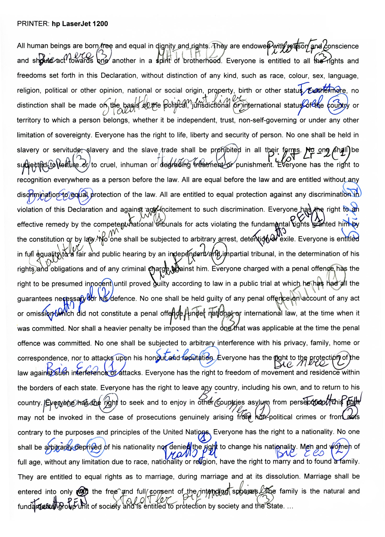 Gli studenti hanno lavorato su tre fogli stampati con stampante laser e due fogli stampati con stampante inkjet. Su questi cinque fogli, con nove penne diverse, sono state apposte 27 scritte (tre per ogni penna); alcune prima della stampa e alcune dopo la stampa. Per ogni tipo di penna, almeno una delle scritte è stata vergata prima della stampa e almeno una dopo la stampa.